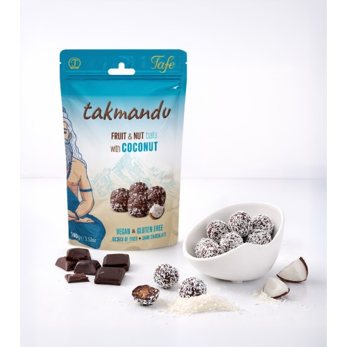 Takmandu Vegan Bitter Çikolata Kaplı Hindistan Cevizli Hurma Topları 100g